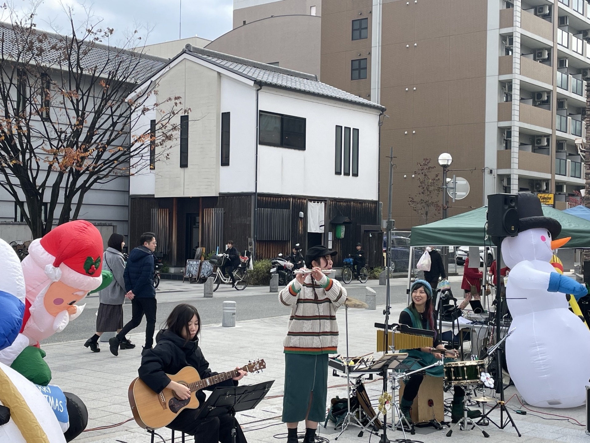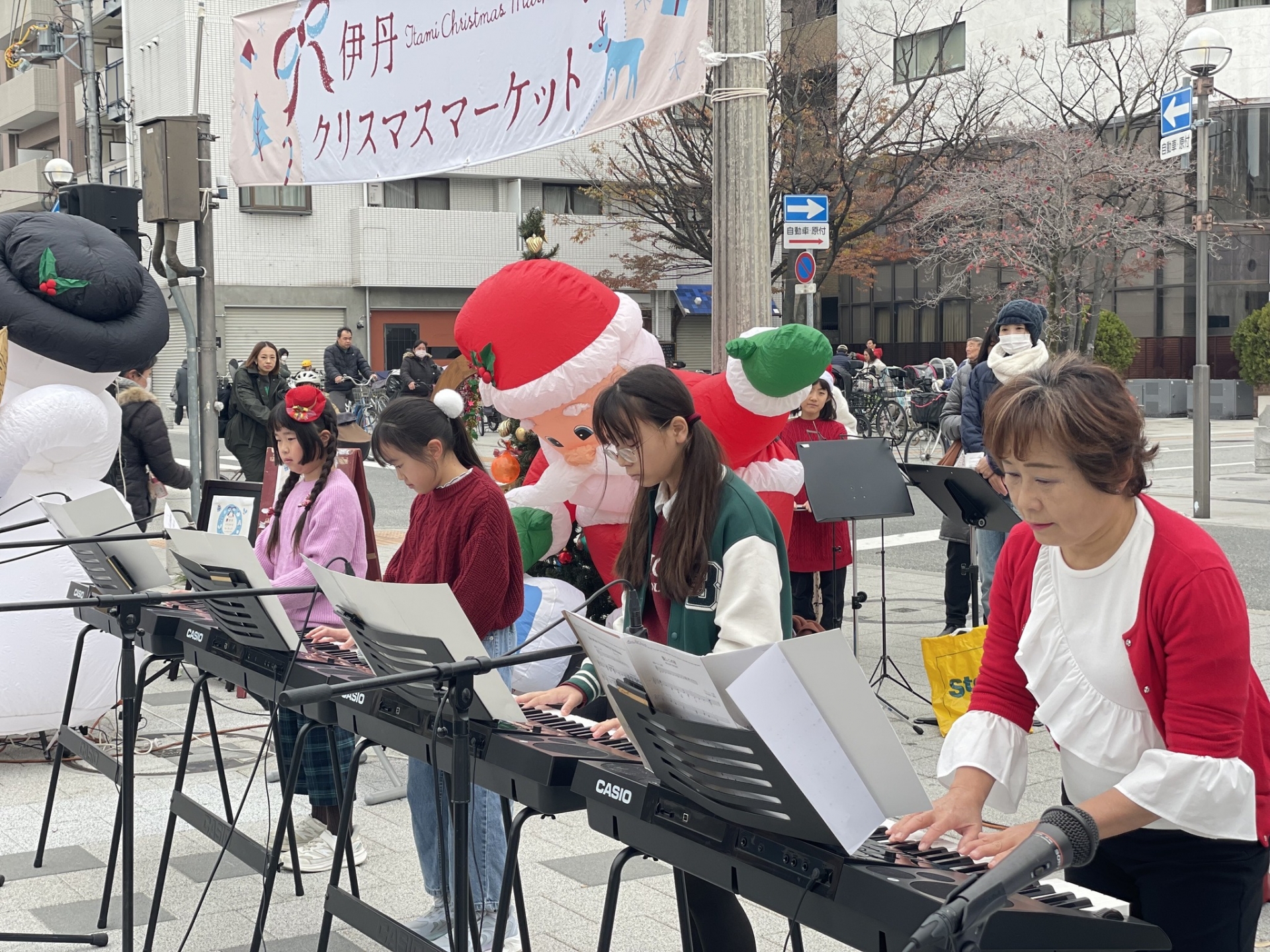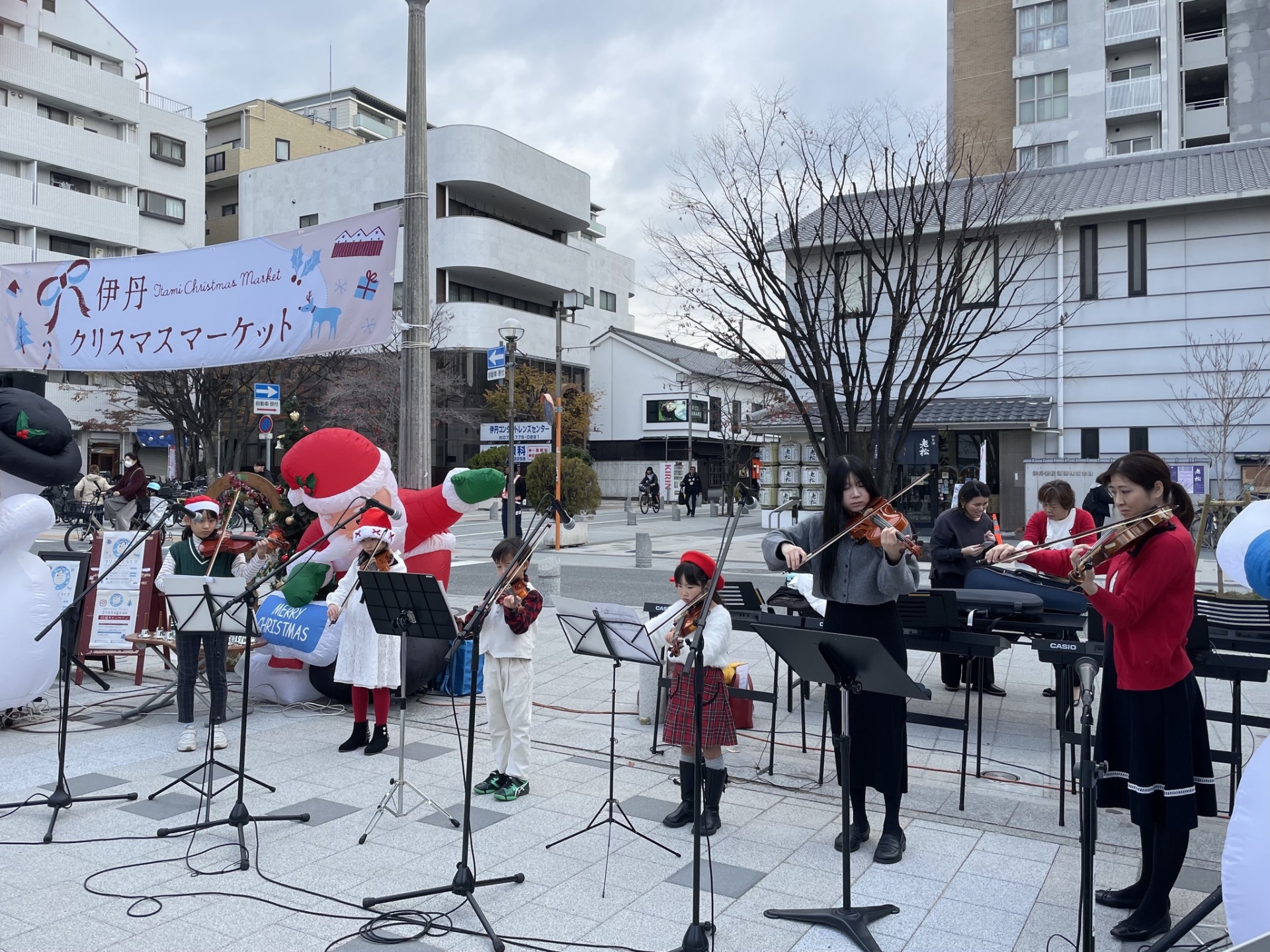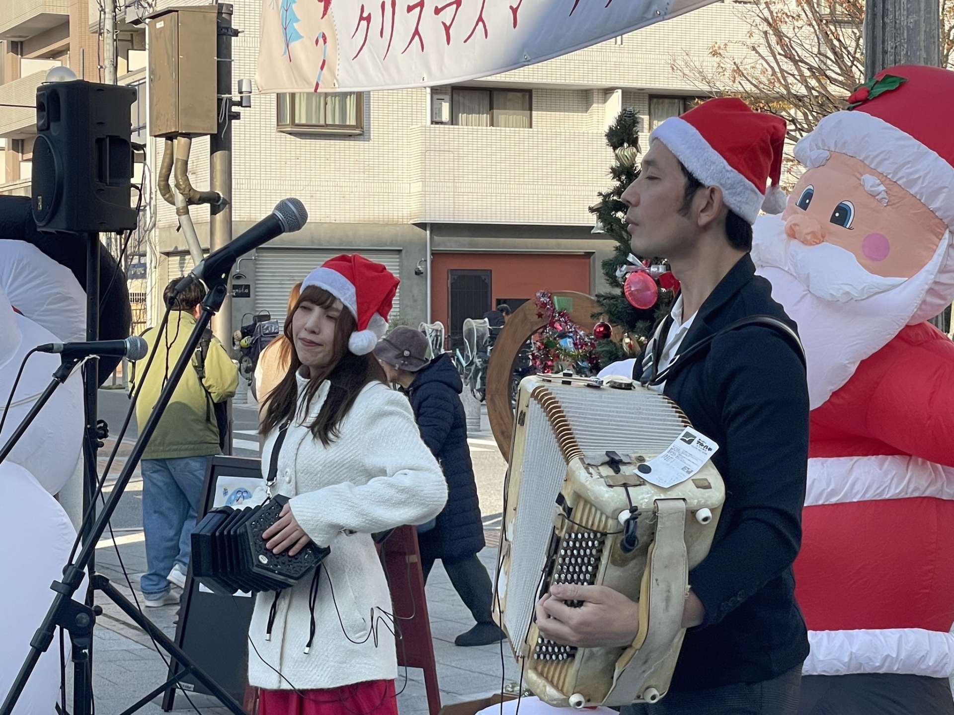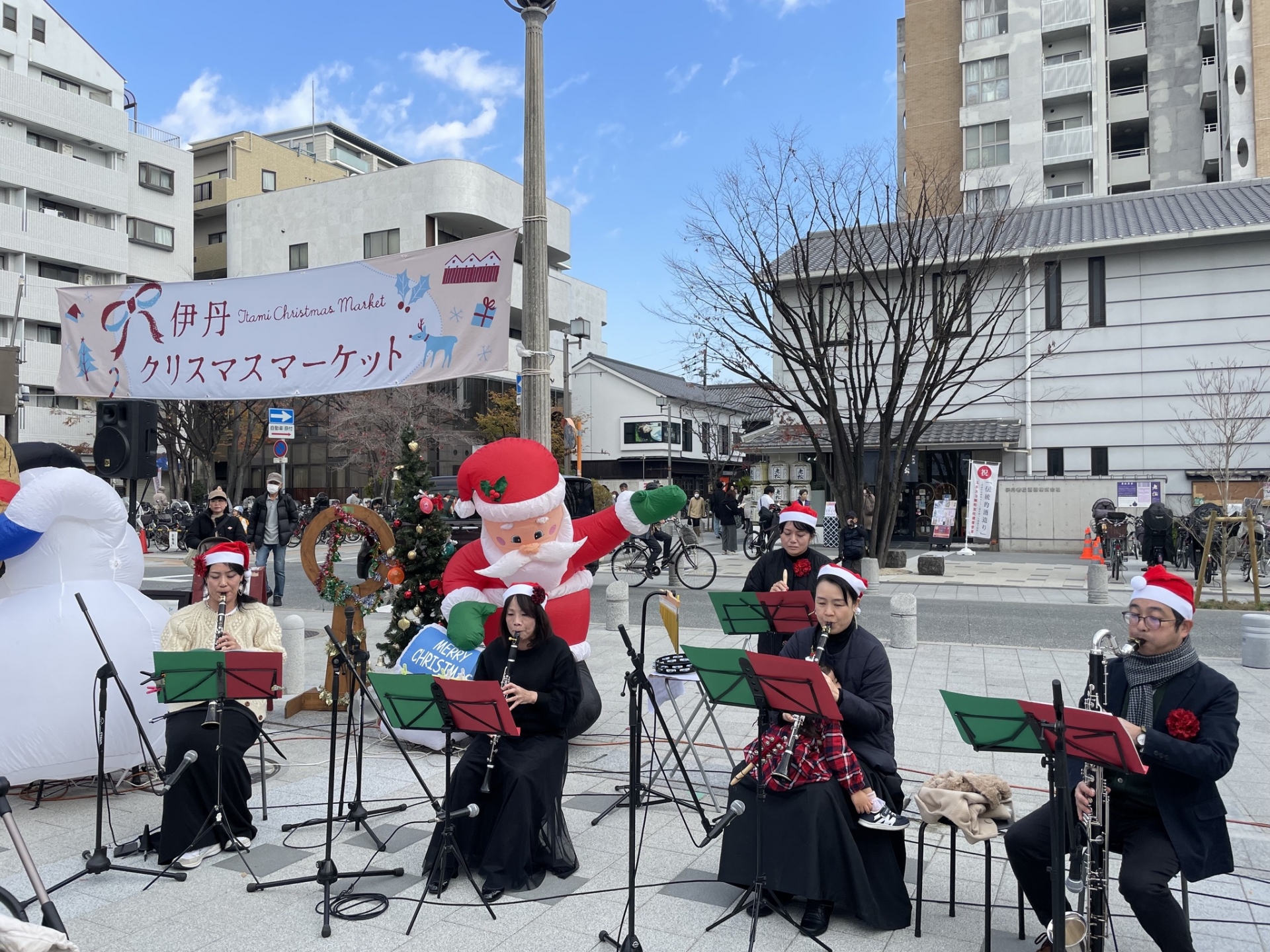 ステージでは、ミュージシャンがクリスマス音楽を演奏します♫