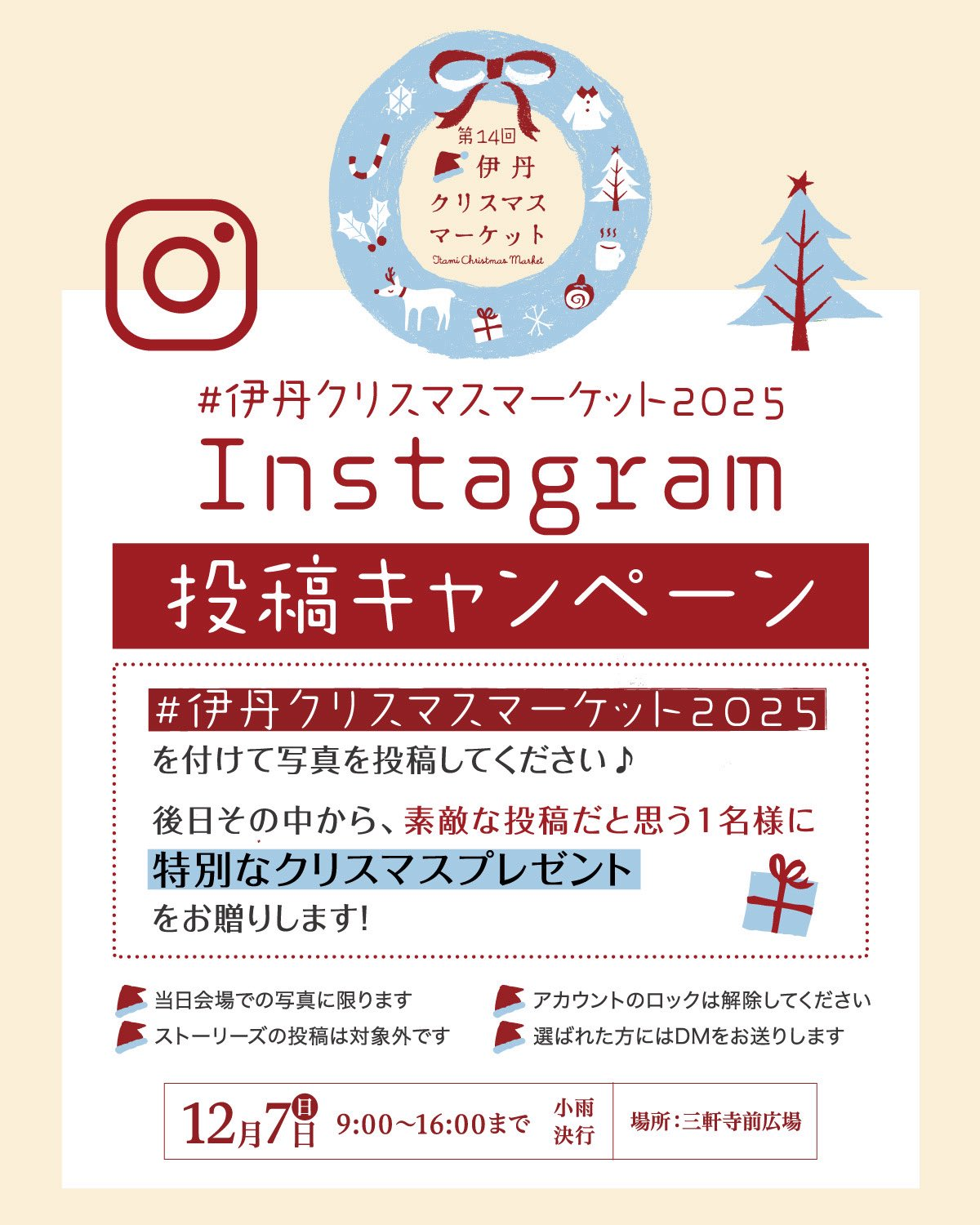 ハッシュタグ「#伊丹クリスマスマーケット2025」をつけて写真を投稿しよう♪
