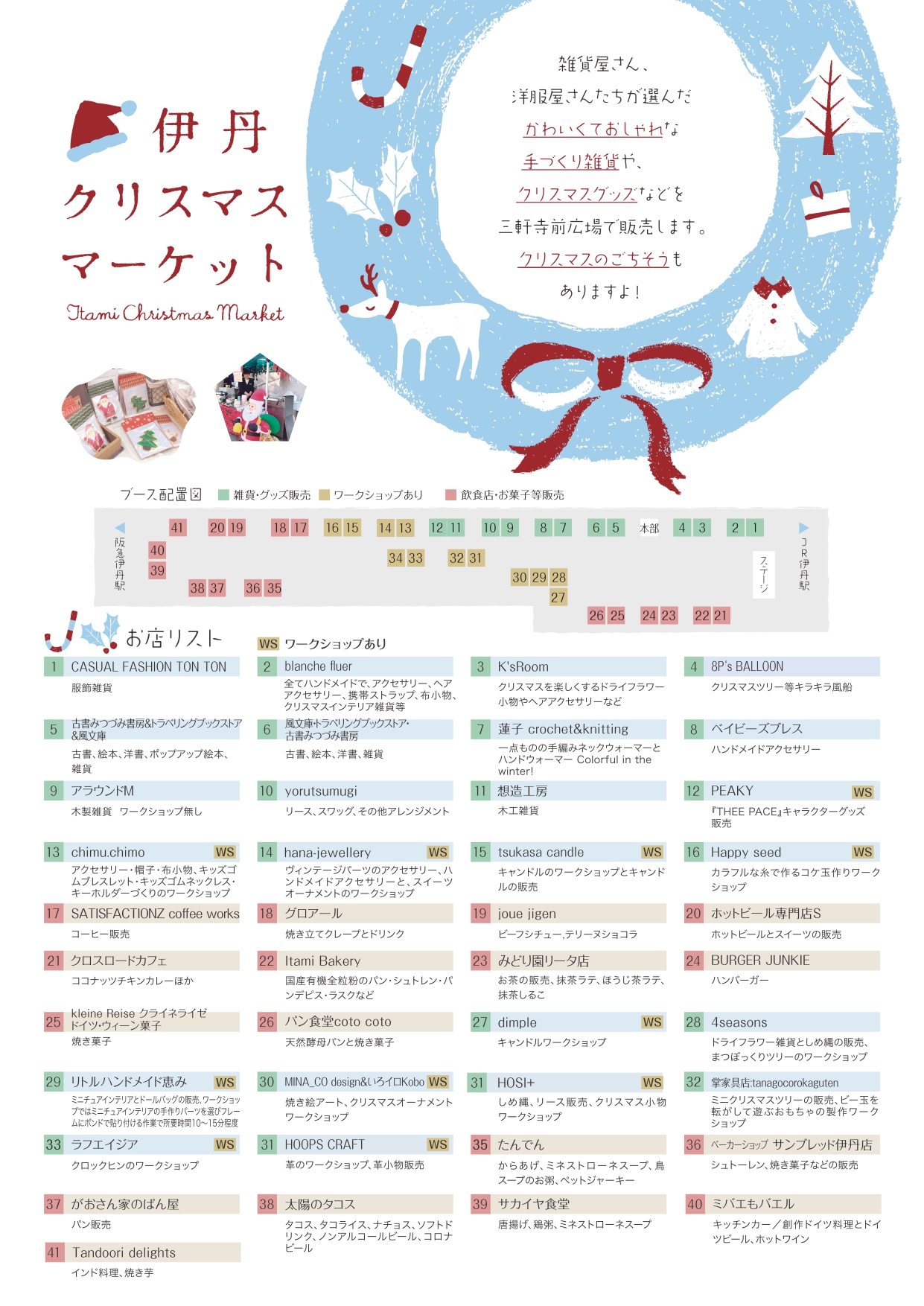 伊丹市内外の雑貨屋さん・洋服屋さんが選んだ可愛くておしゃれな手作り雑貨や絵本、クリスマスグッズのワークショップ、クリスマスのお菓子などが大集合します!