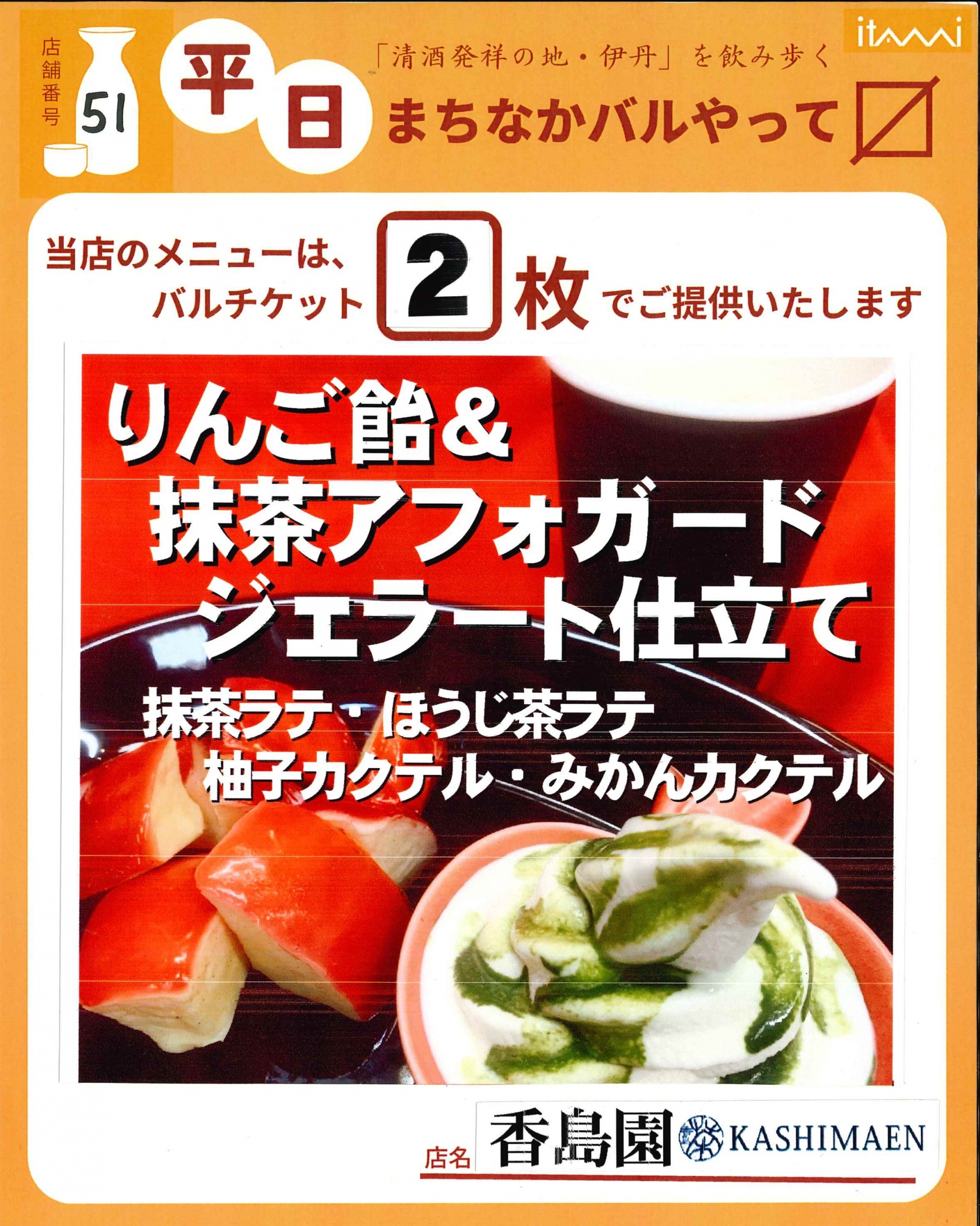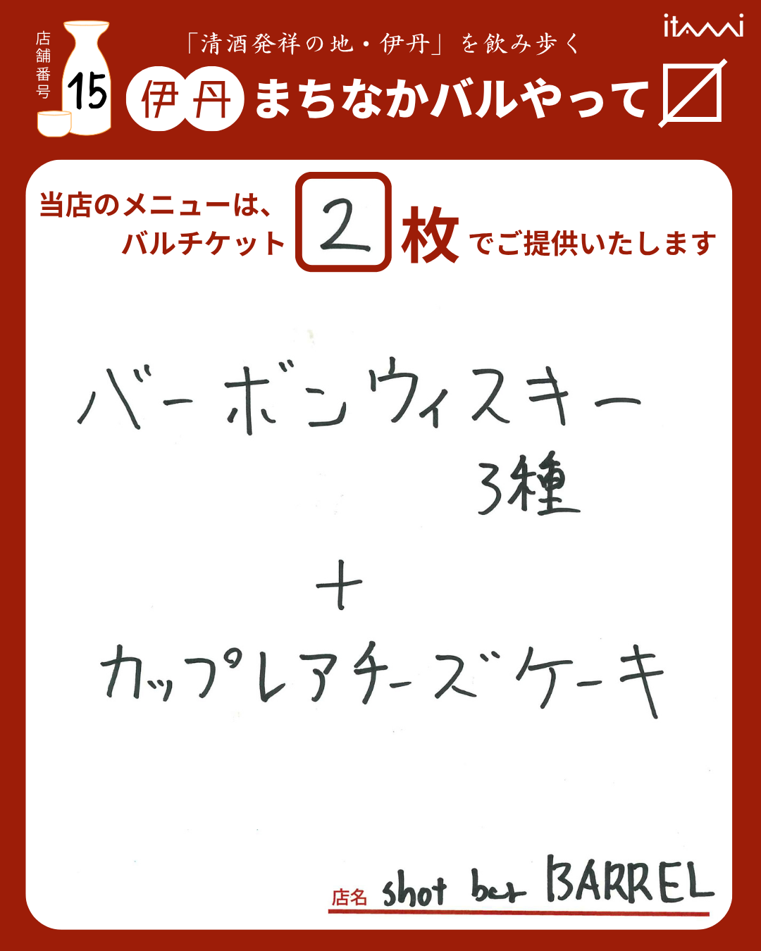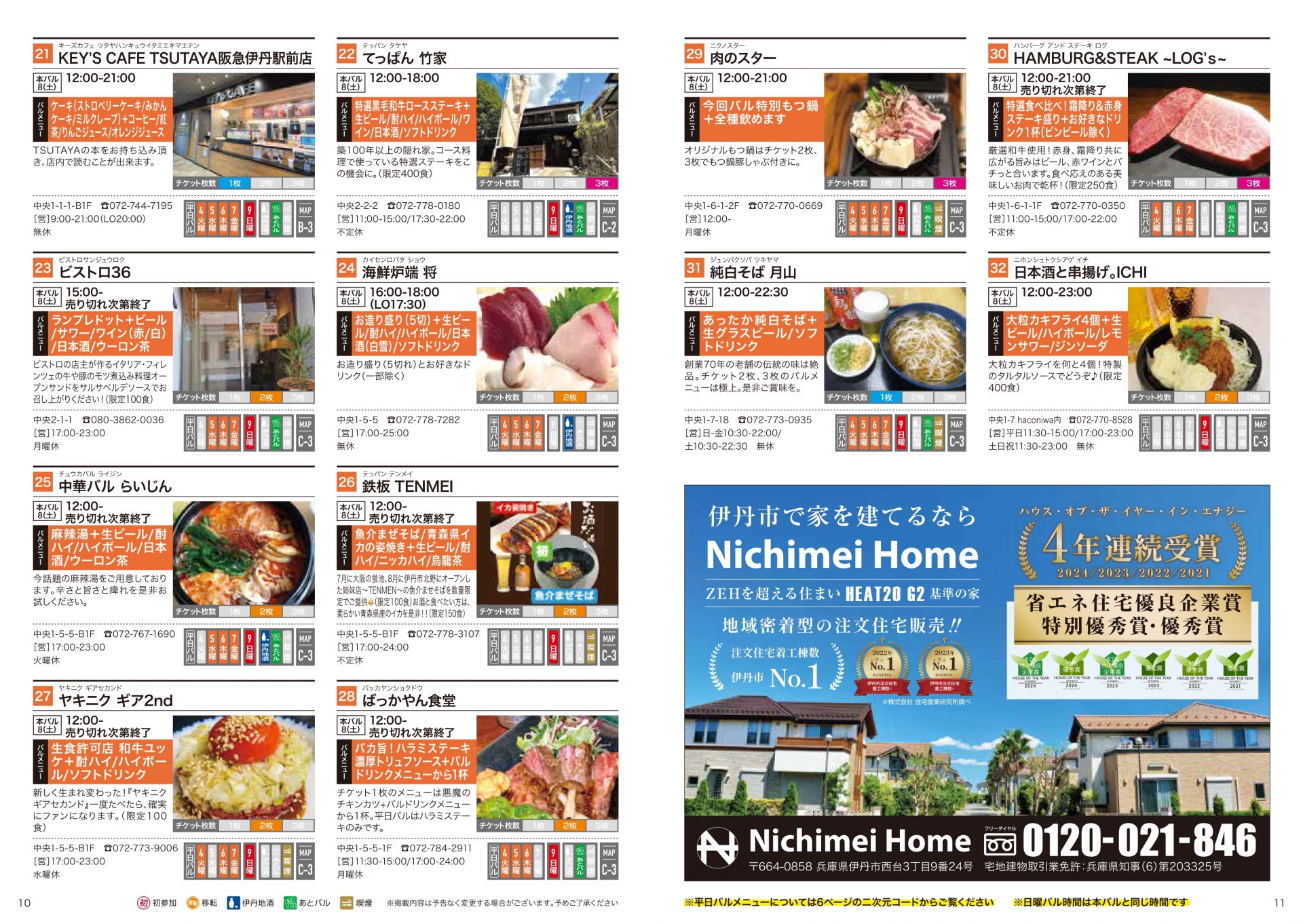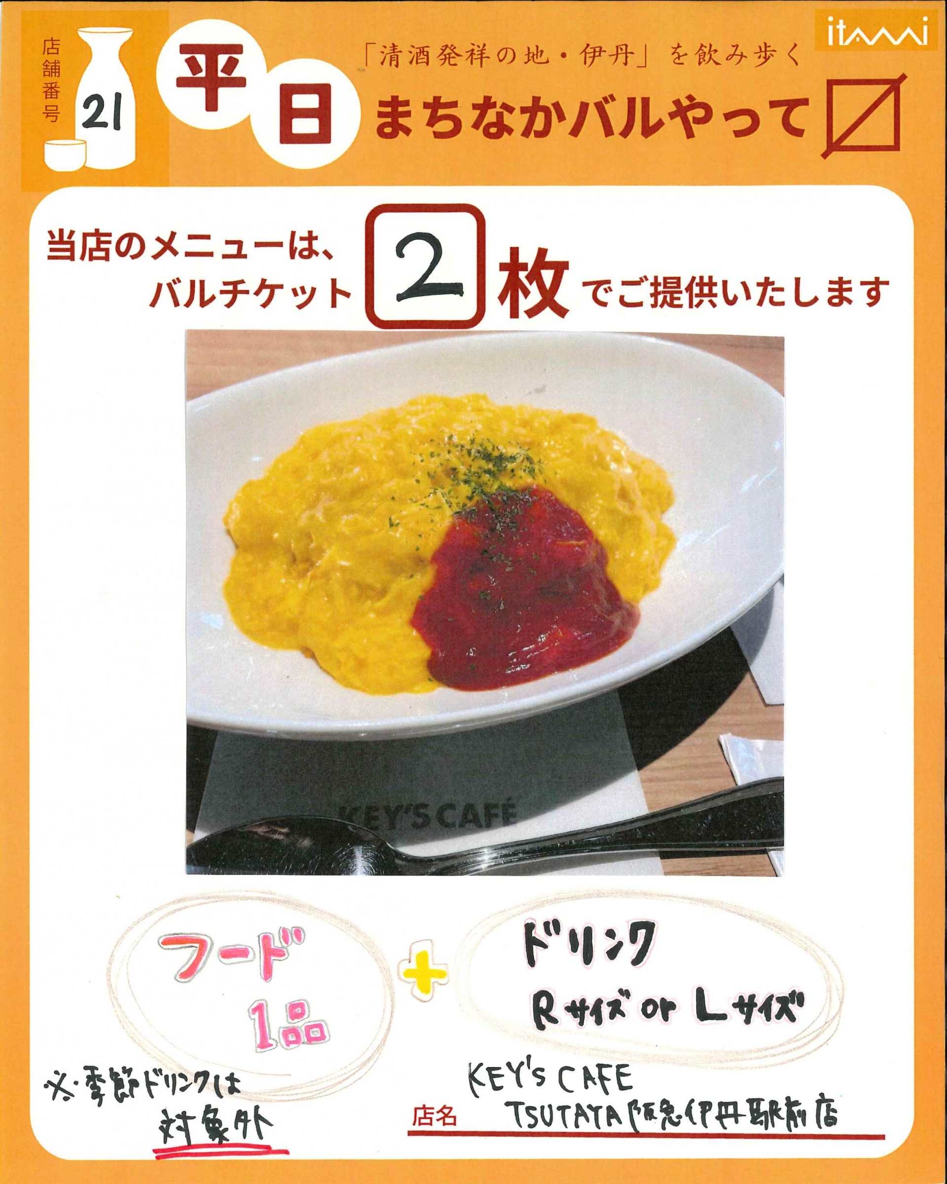 バル参加店全店、チケット販売協力店、伊丹まち未来株式会社(Web予約のみ)は11月6日(木)まで。