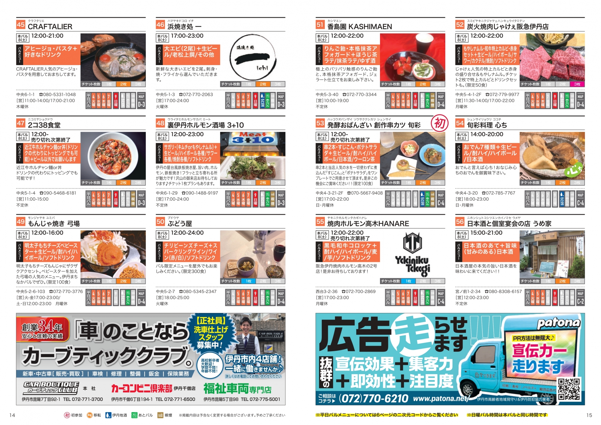 ・バル時間は各店の通常営業時間