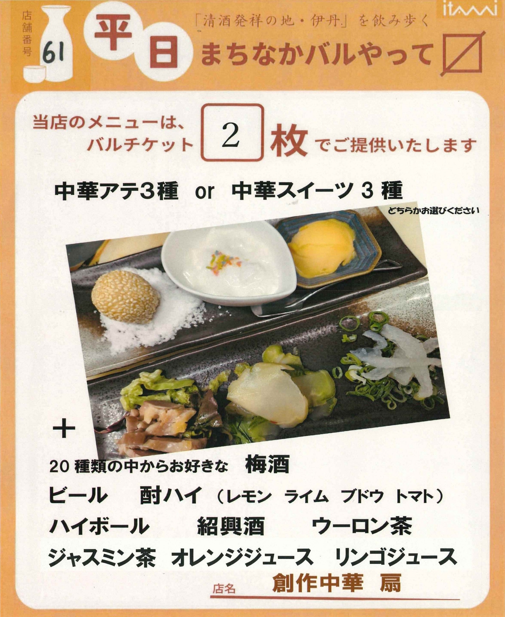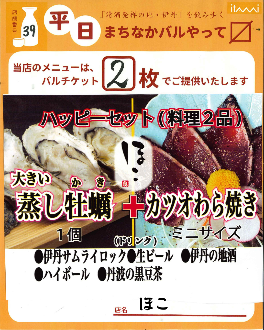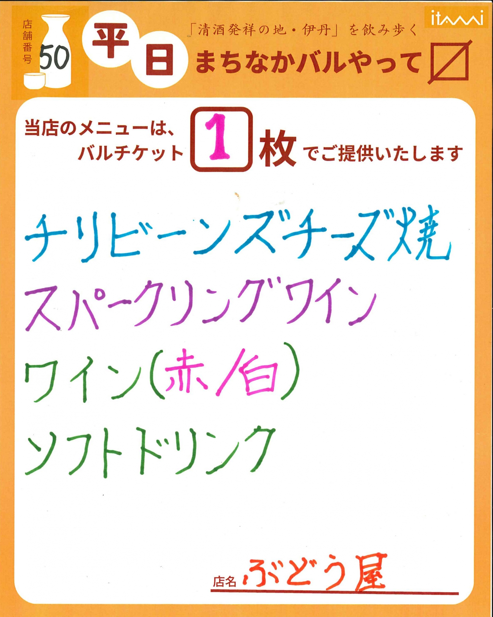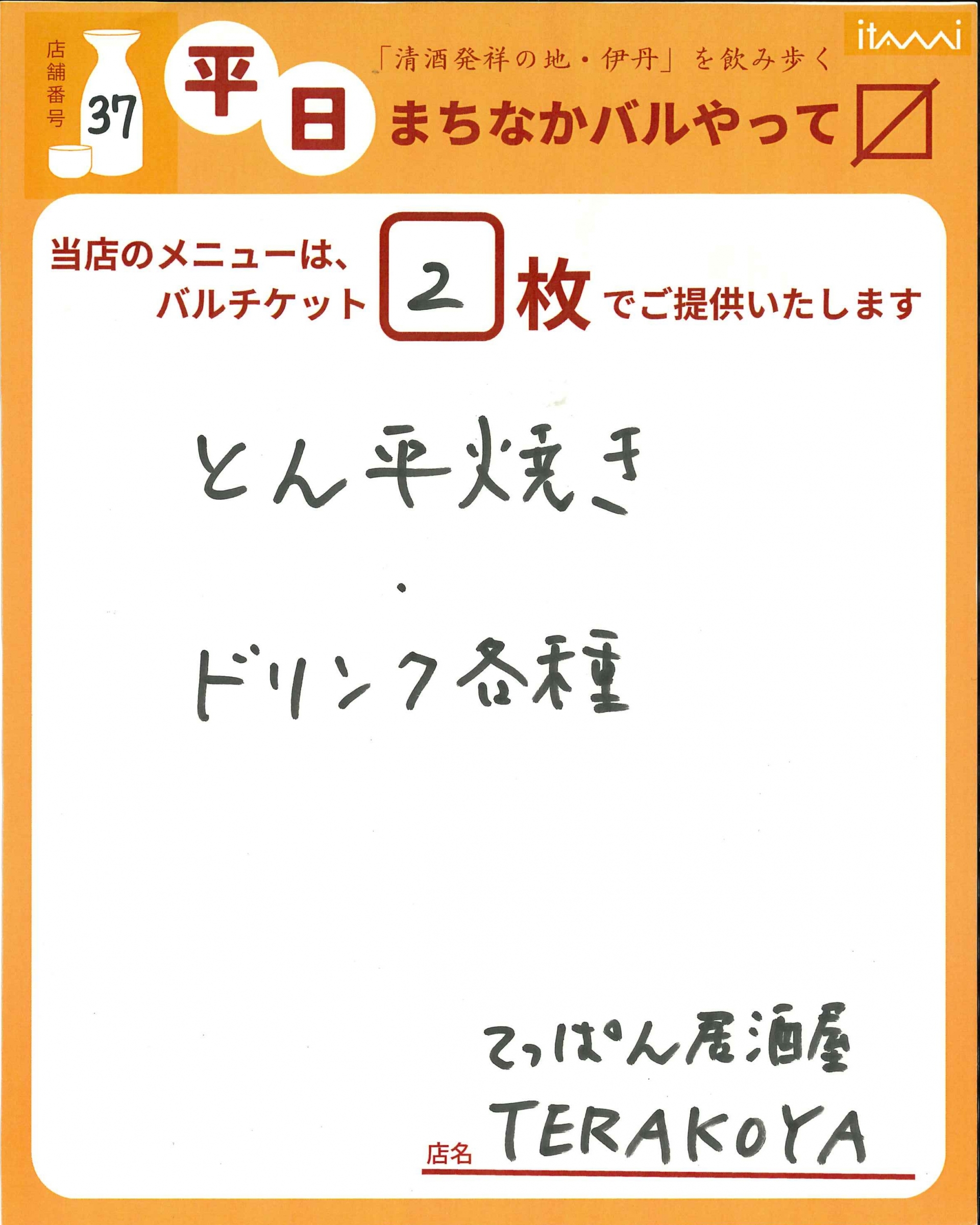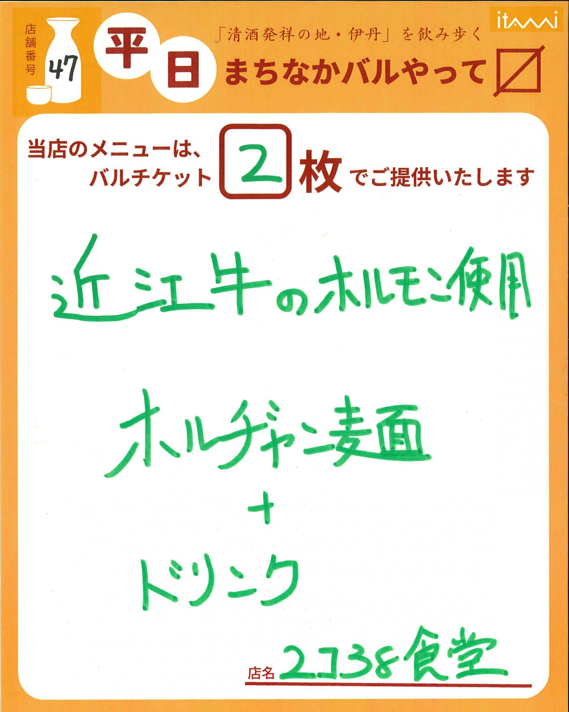 第33回 伊丹まちなかバル 平日バルメニュー表紹介