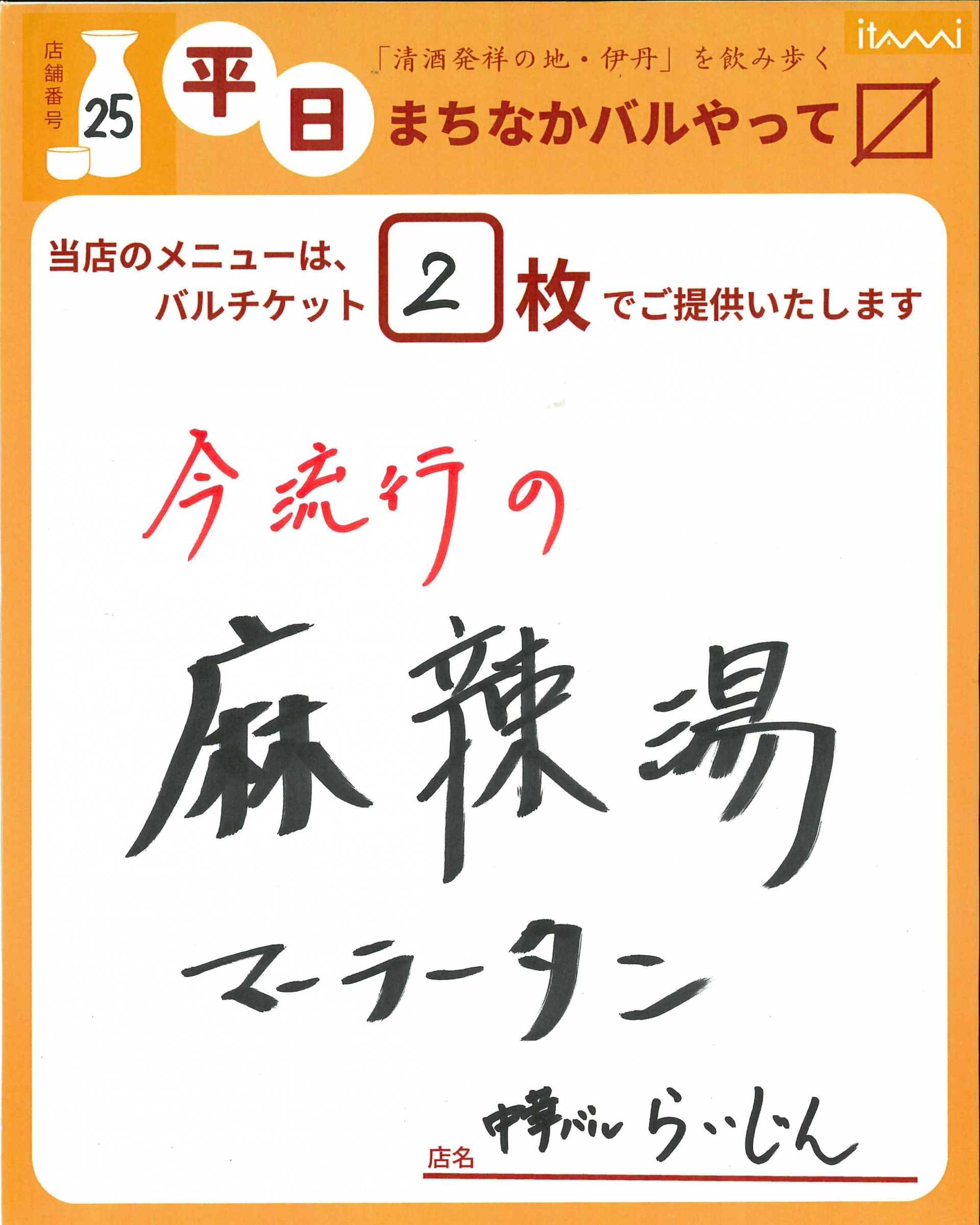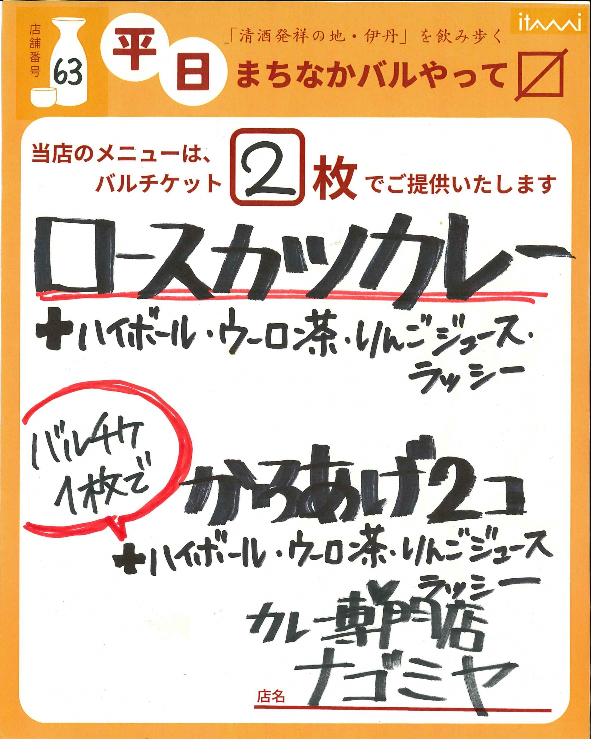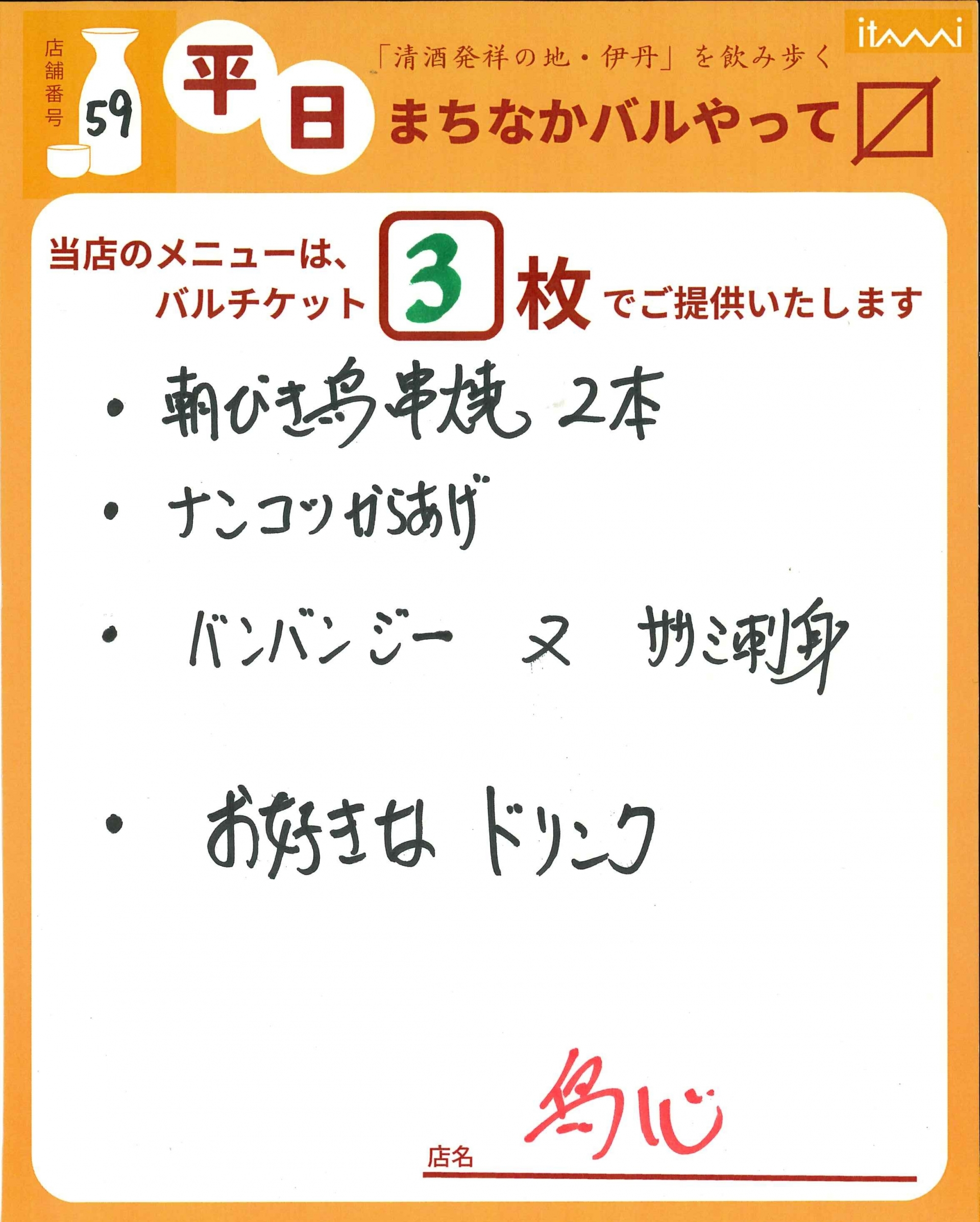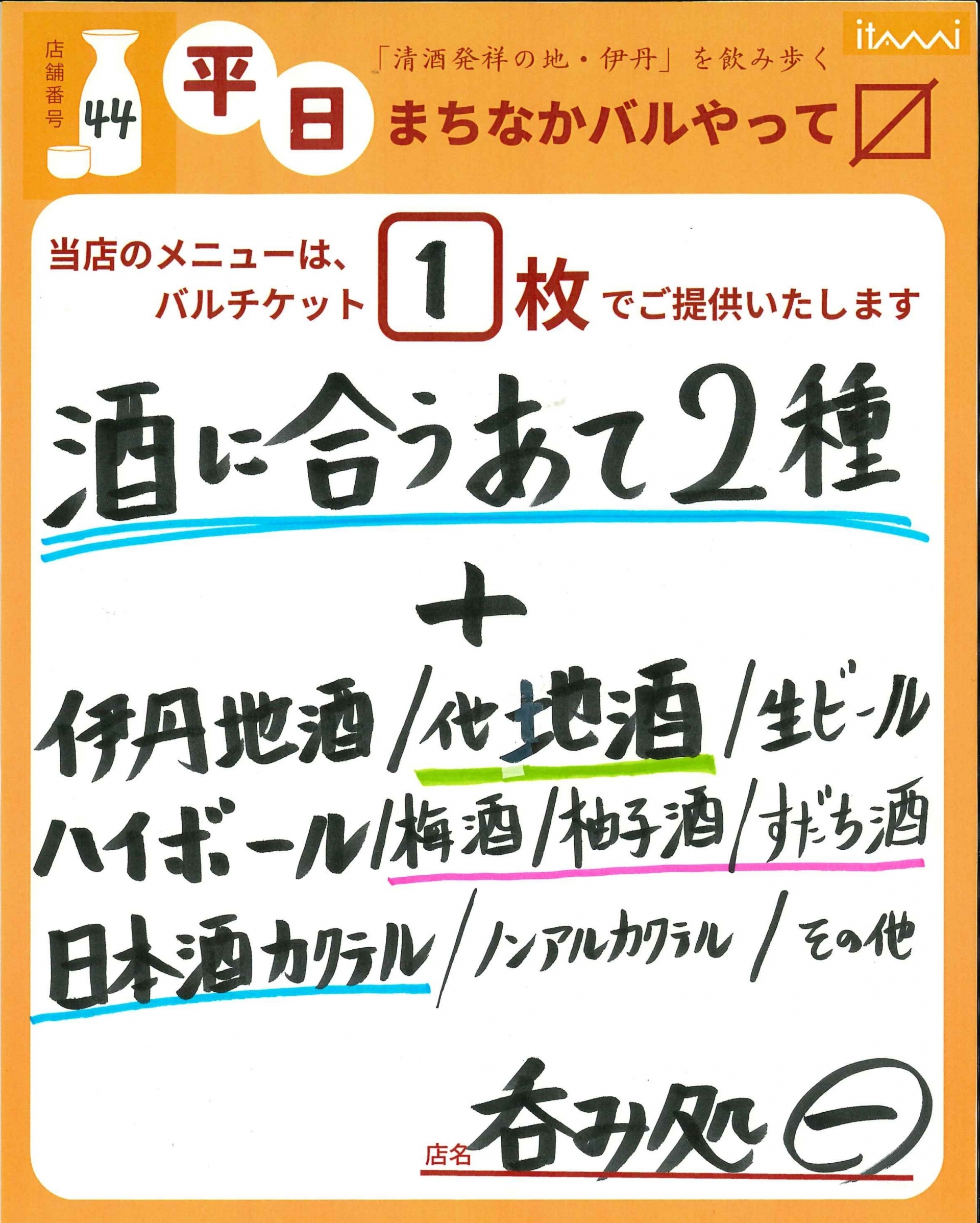第33回 伊丹まちなかバル 平日バルメニュー表紹介