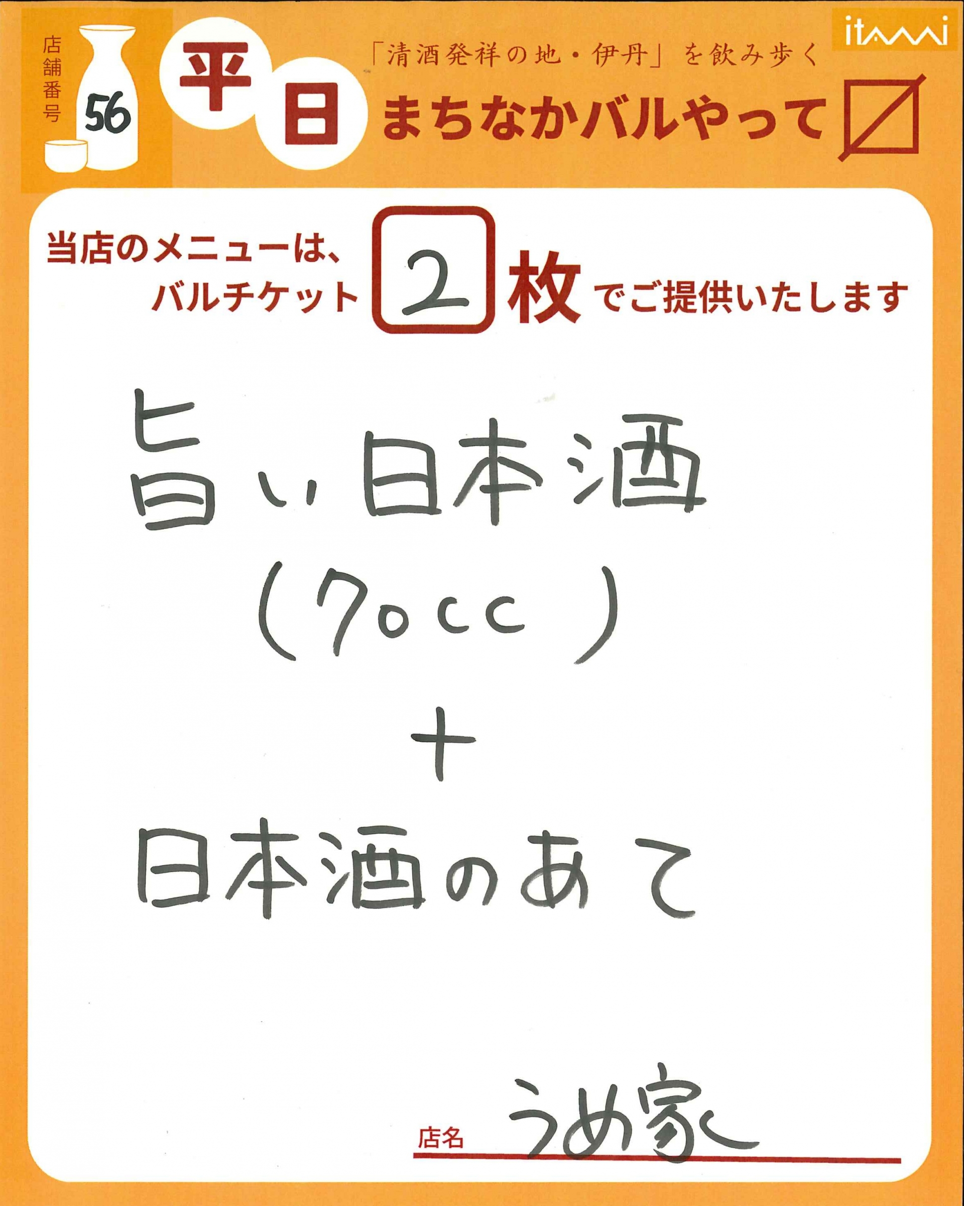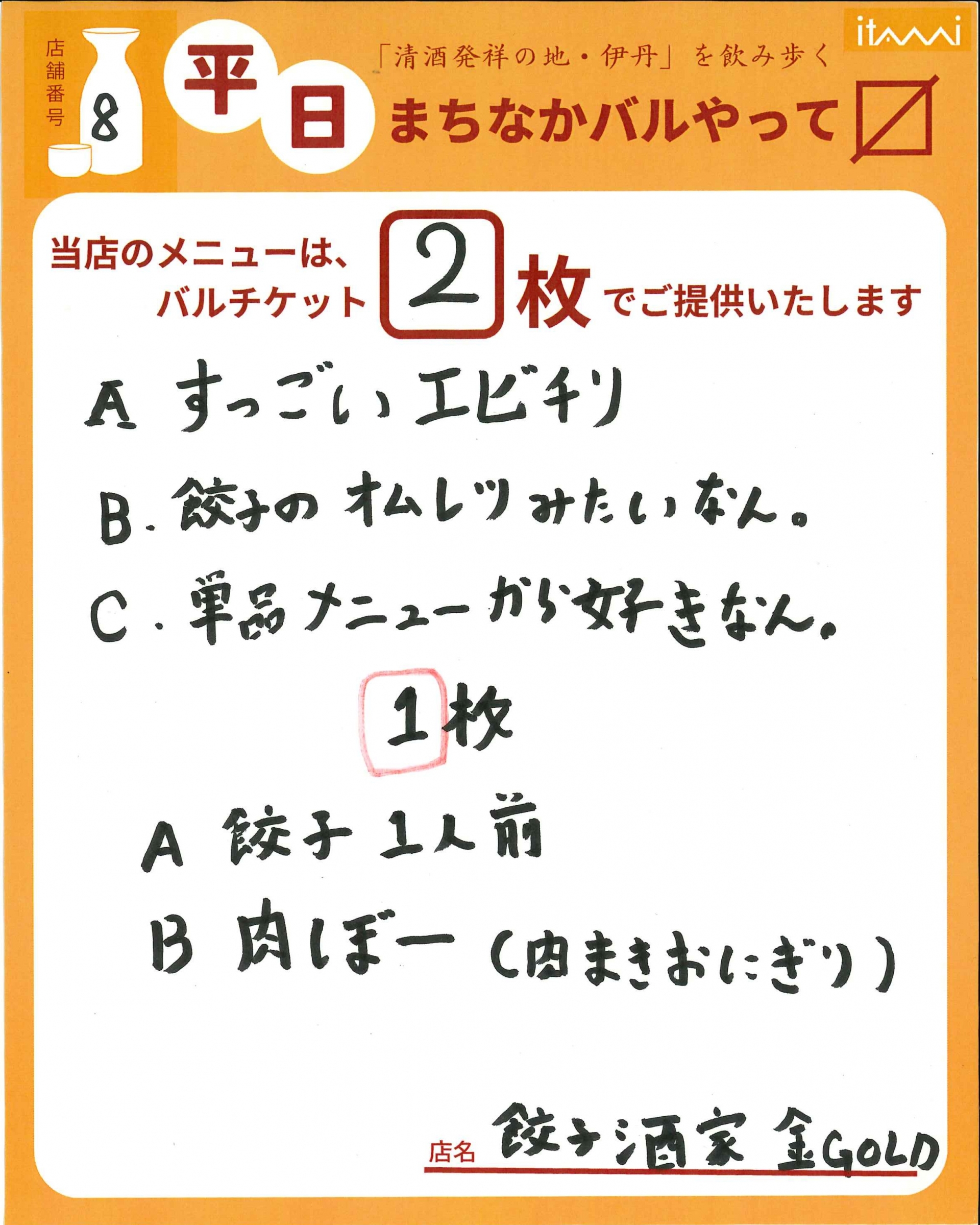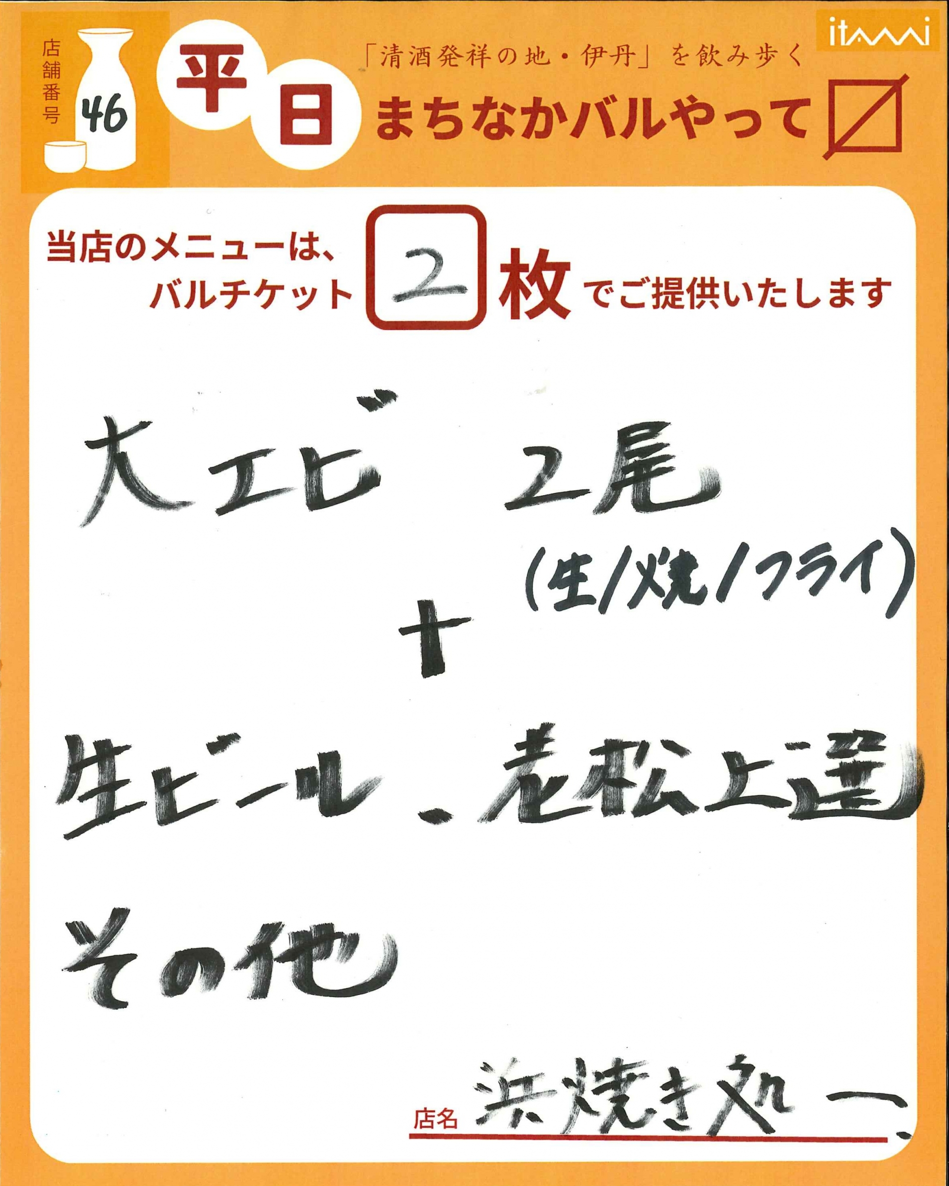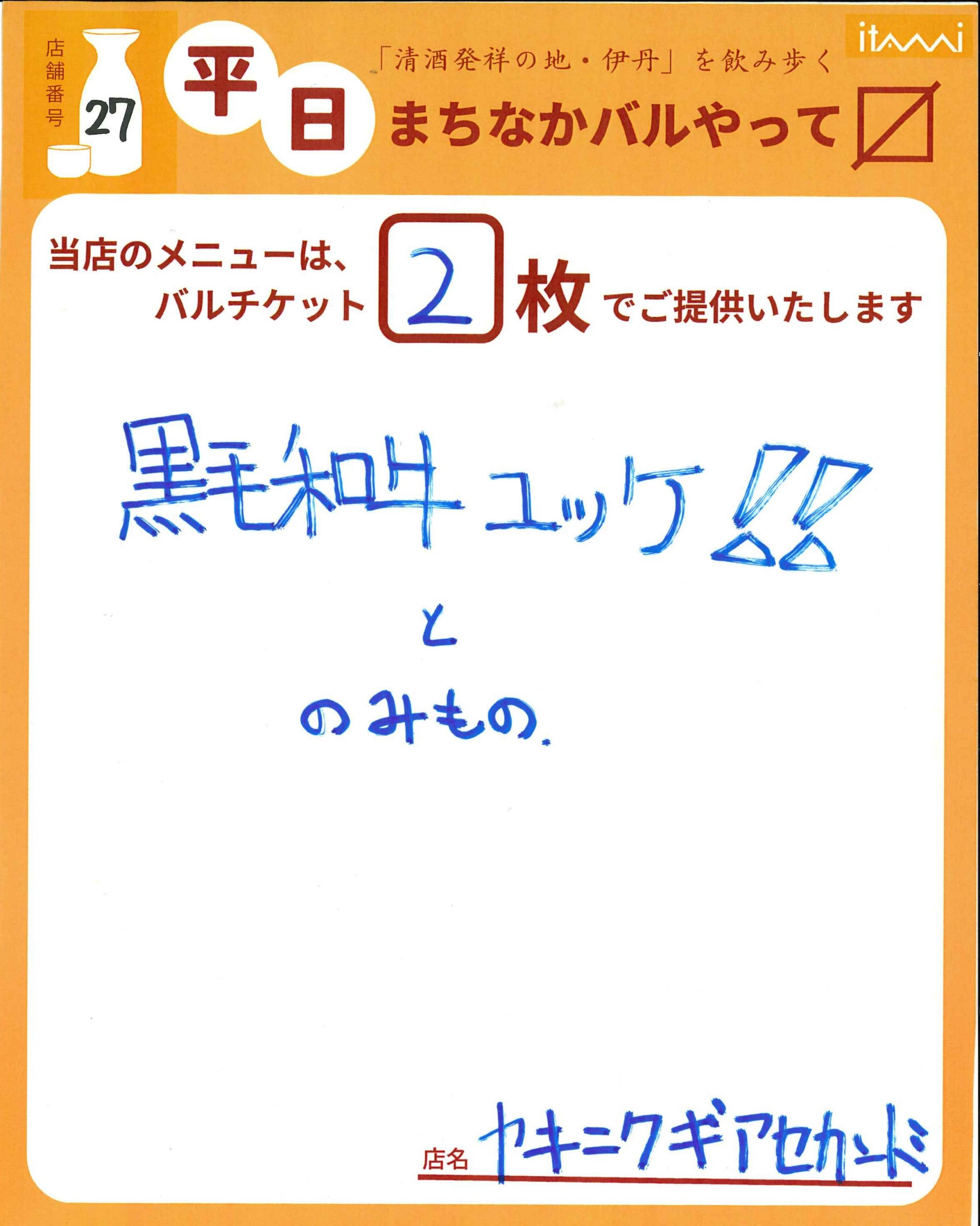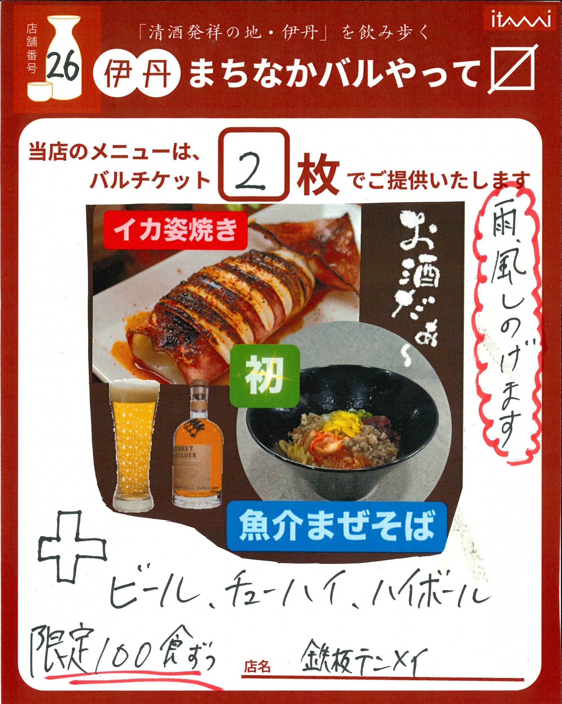 第33回 伊丹まちなかバル 平日バルメニュー表紹介