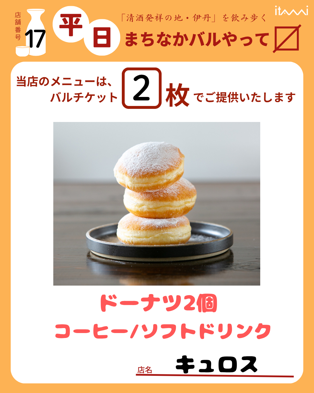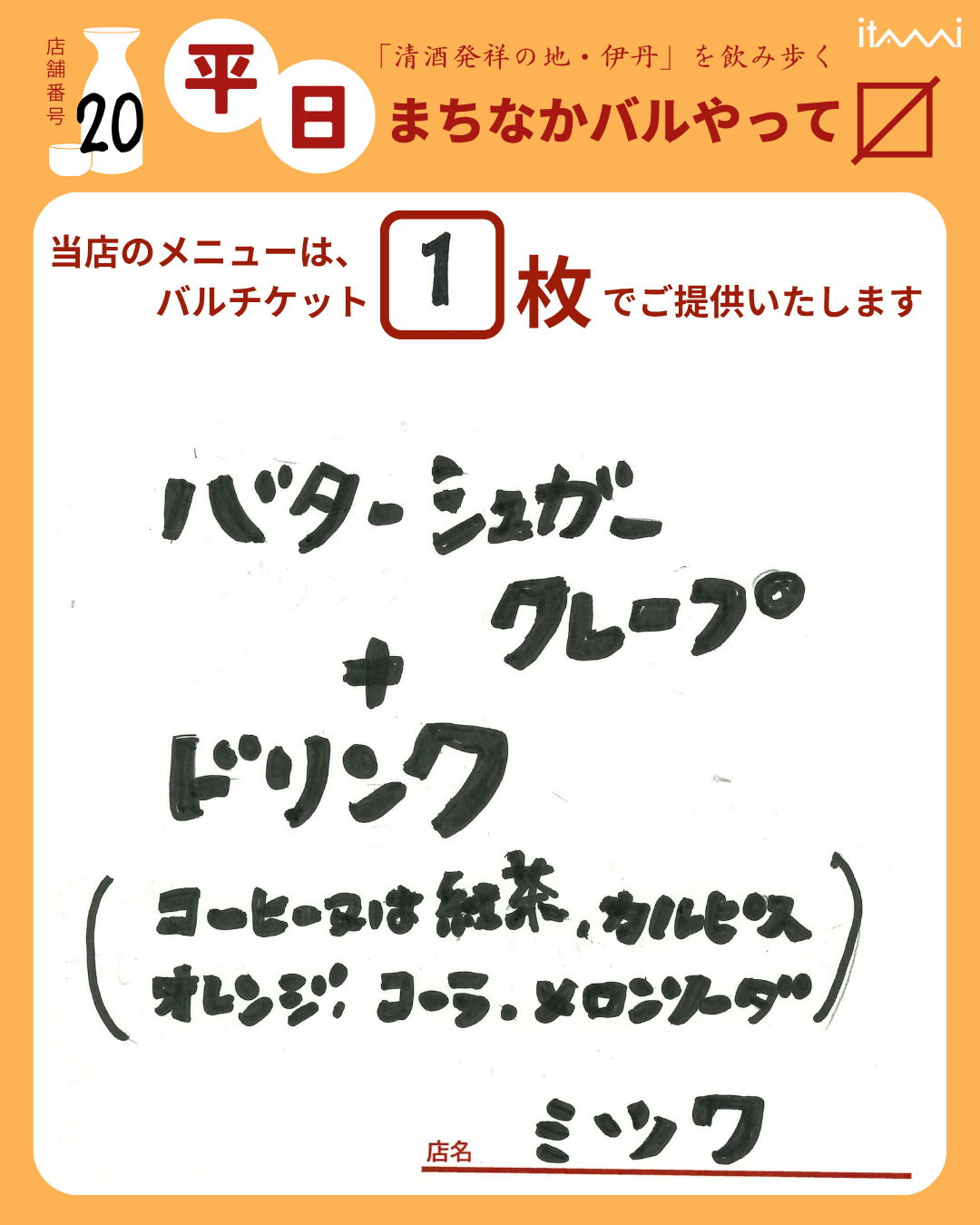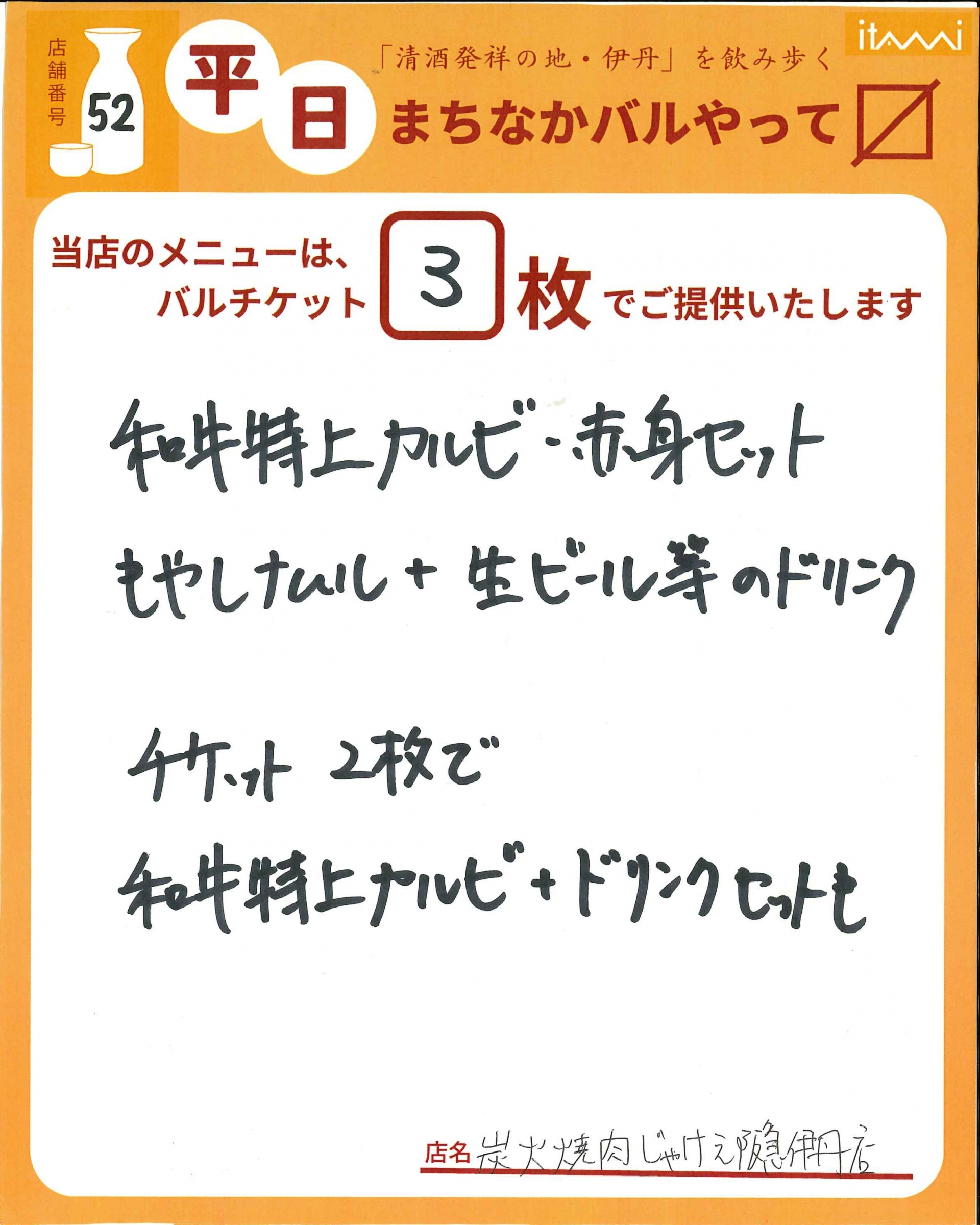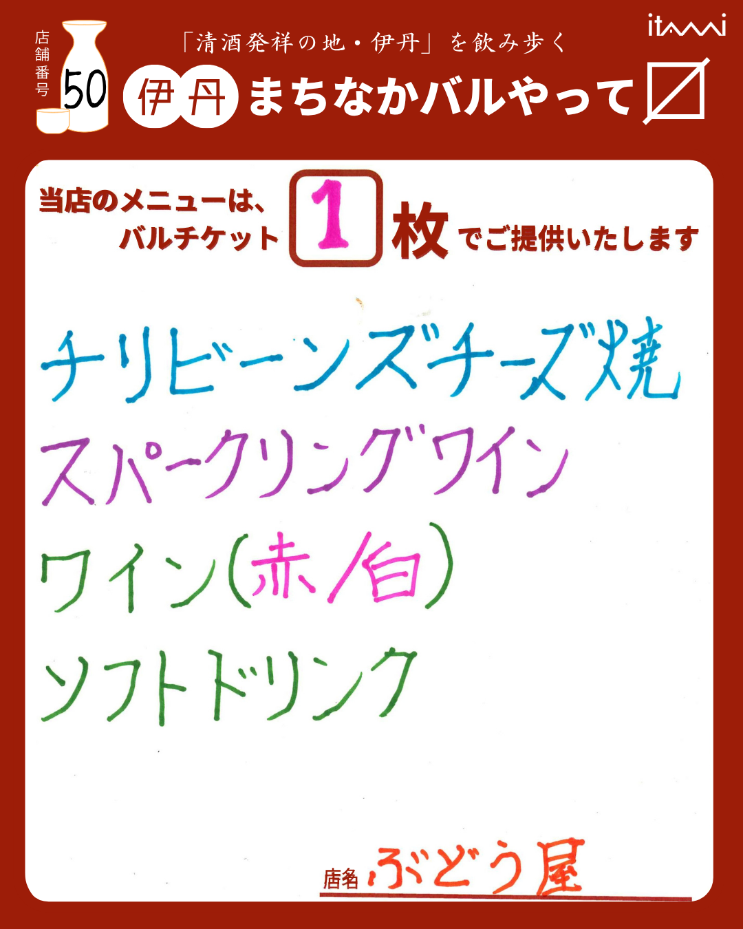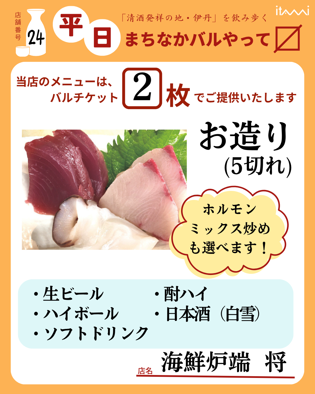 第33回 伊丹まちなかバル 平日バルメニュー表紹介