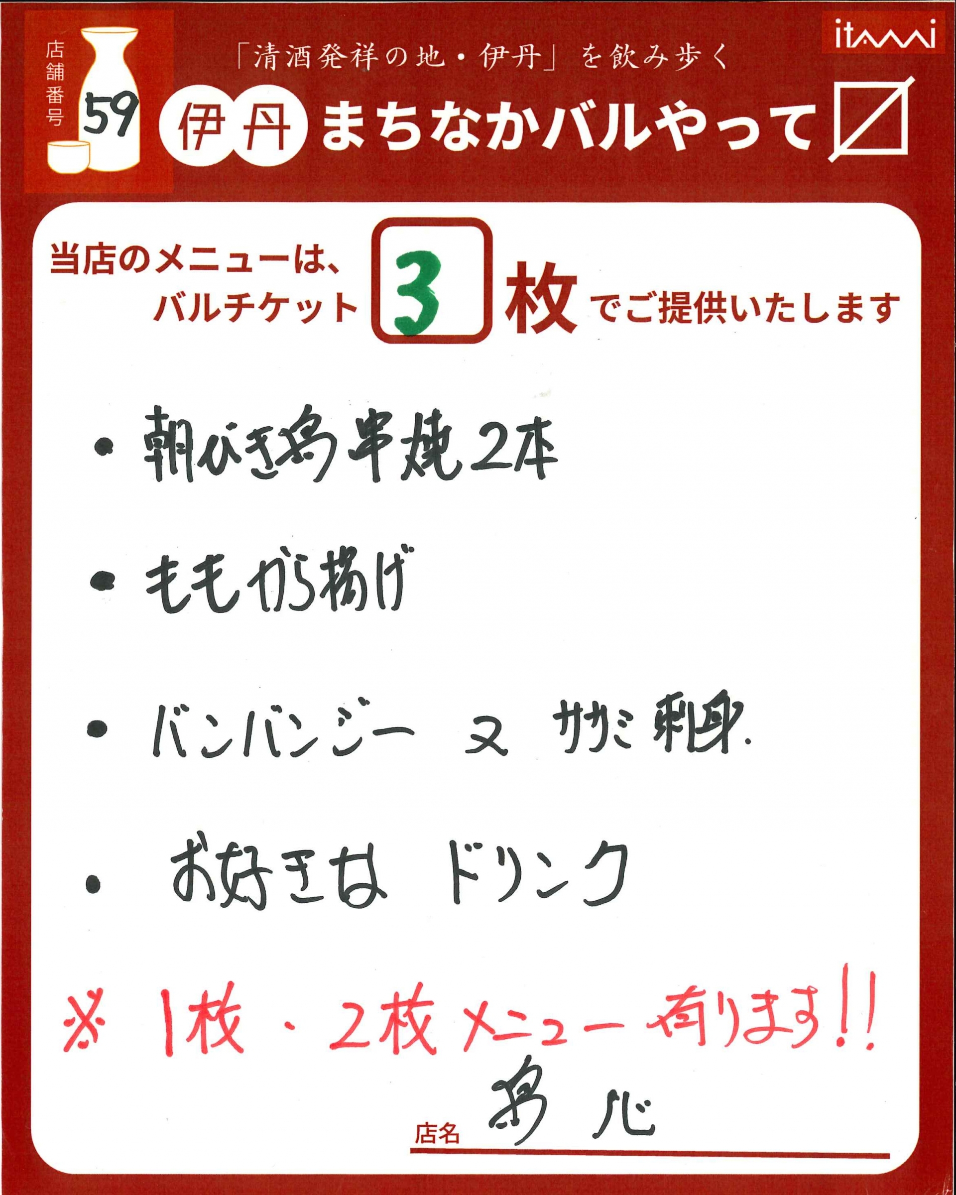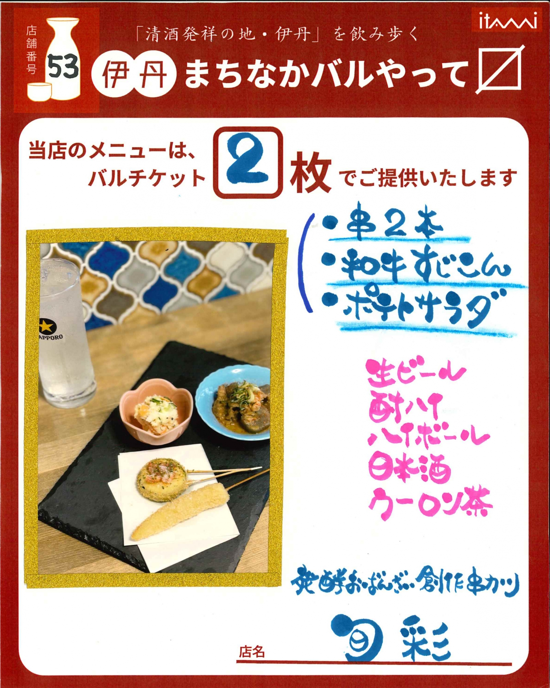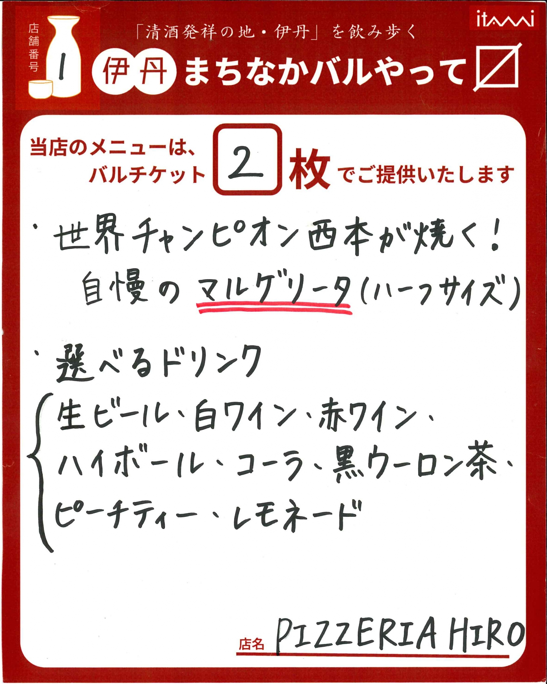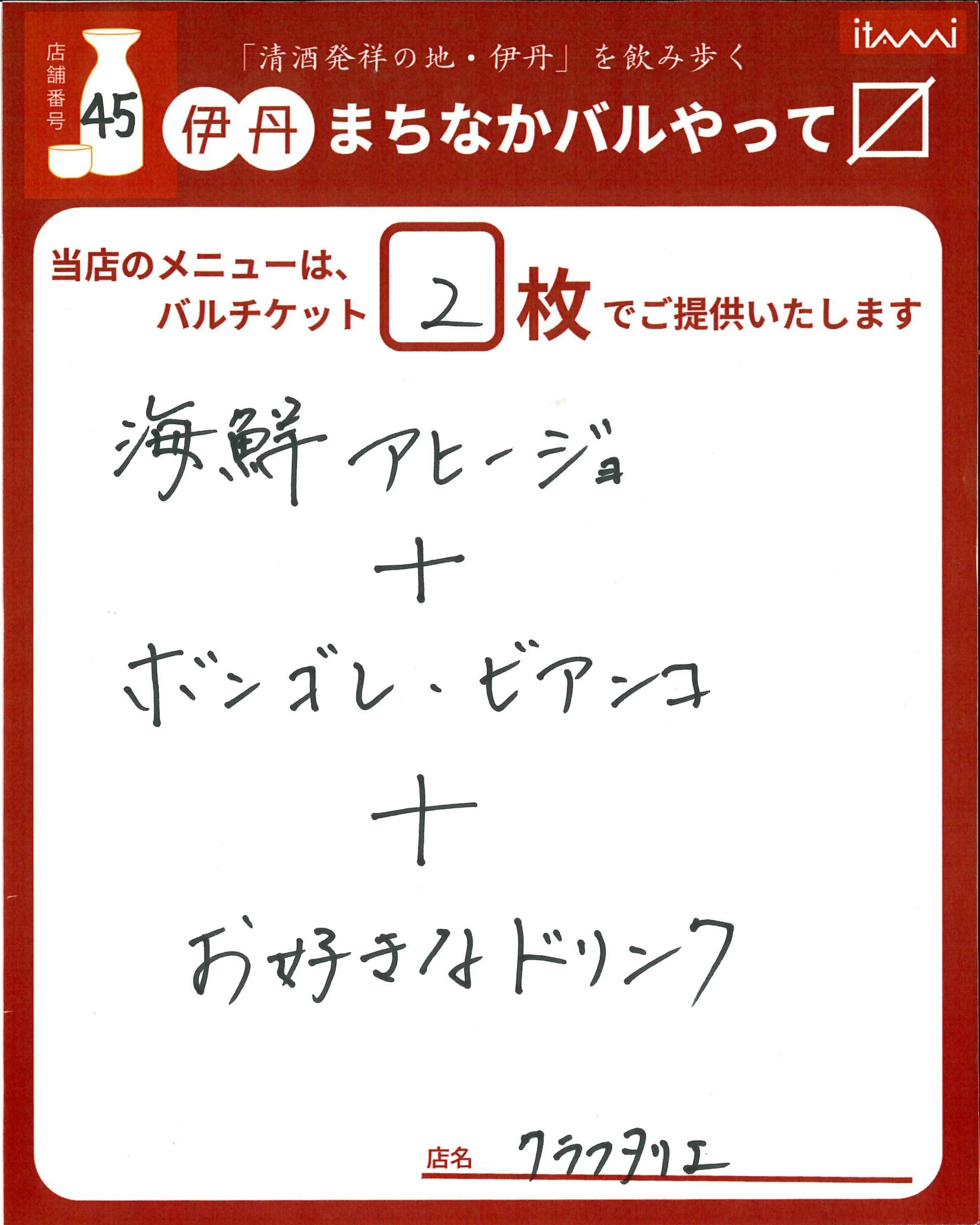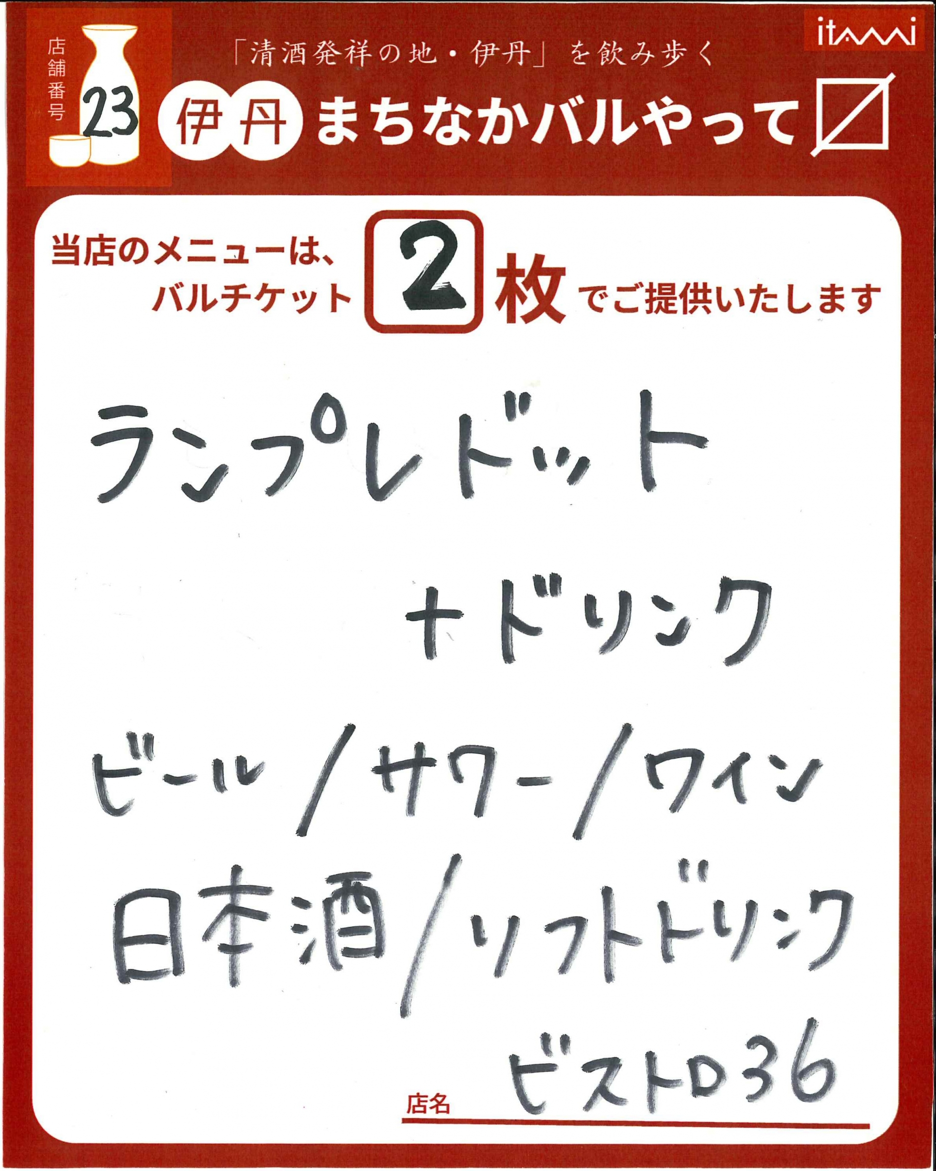 第33回 伊丹まちなかバル 本バルメニュー表紹介