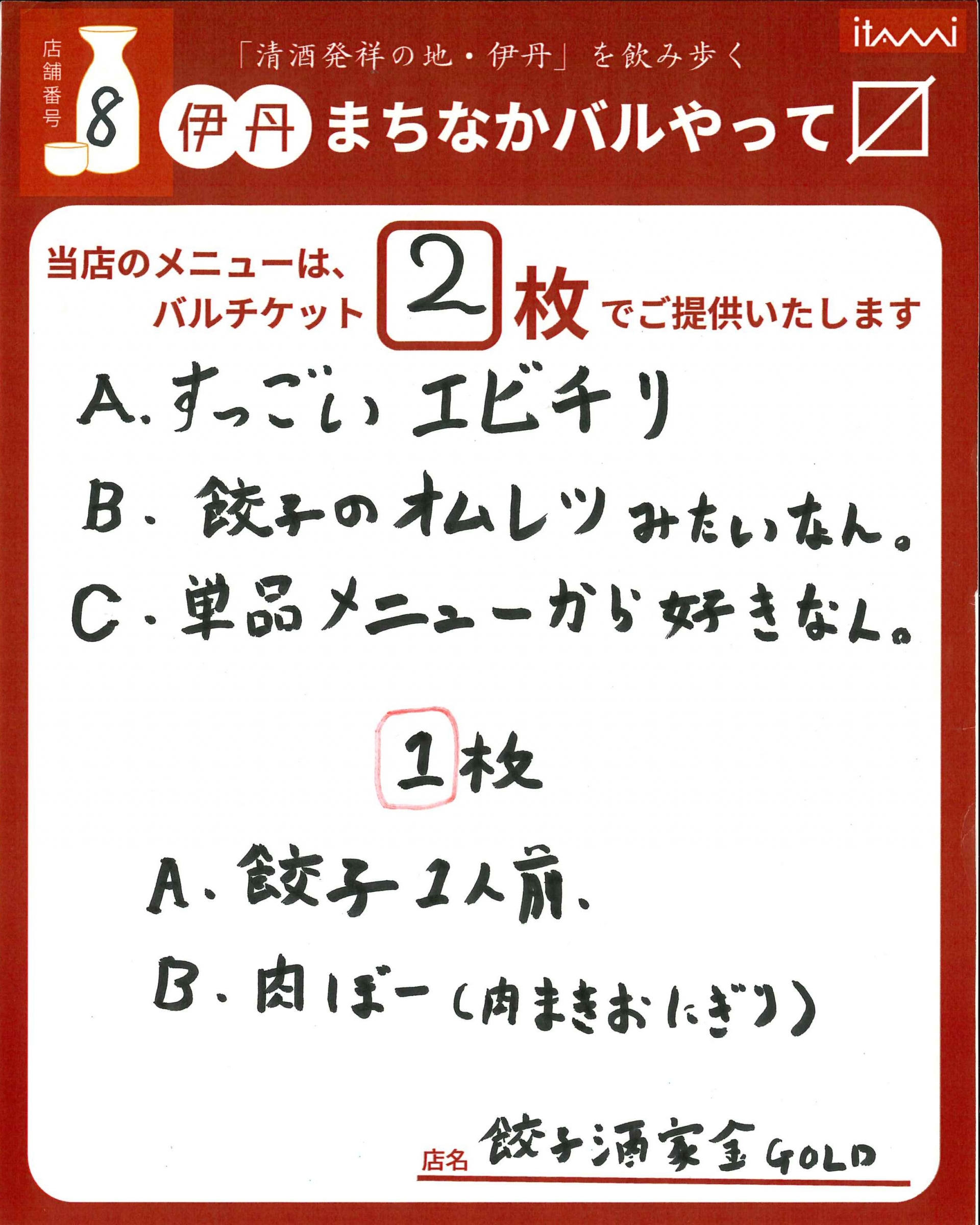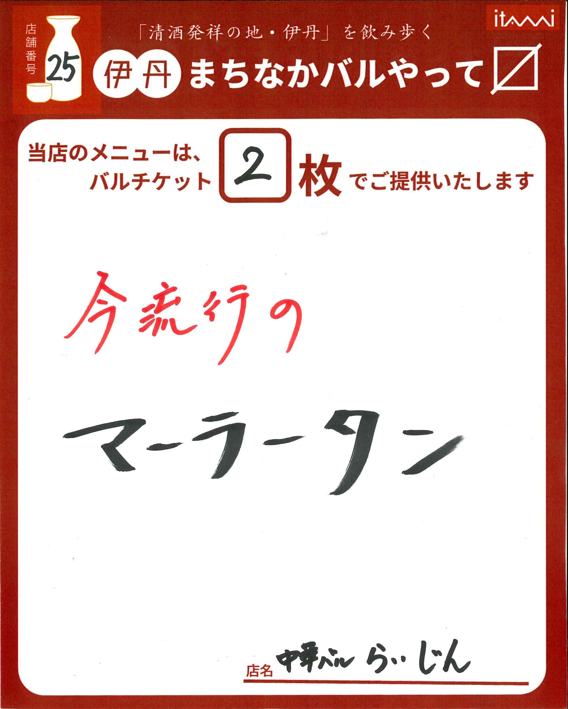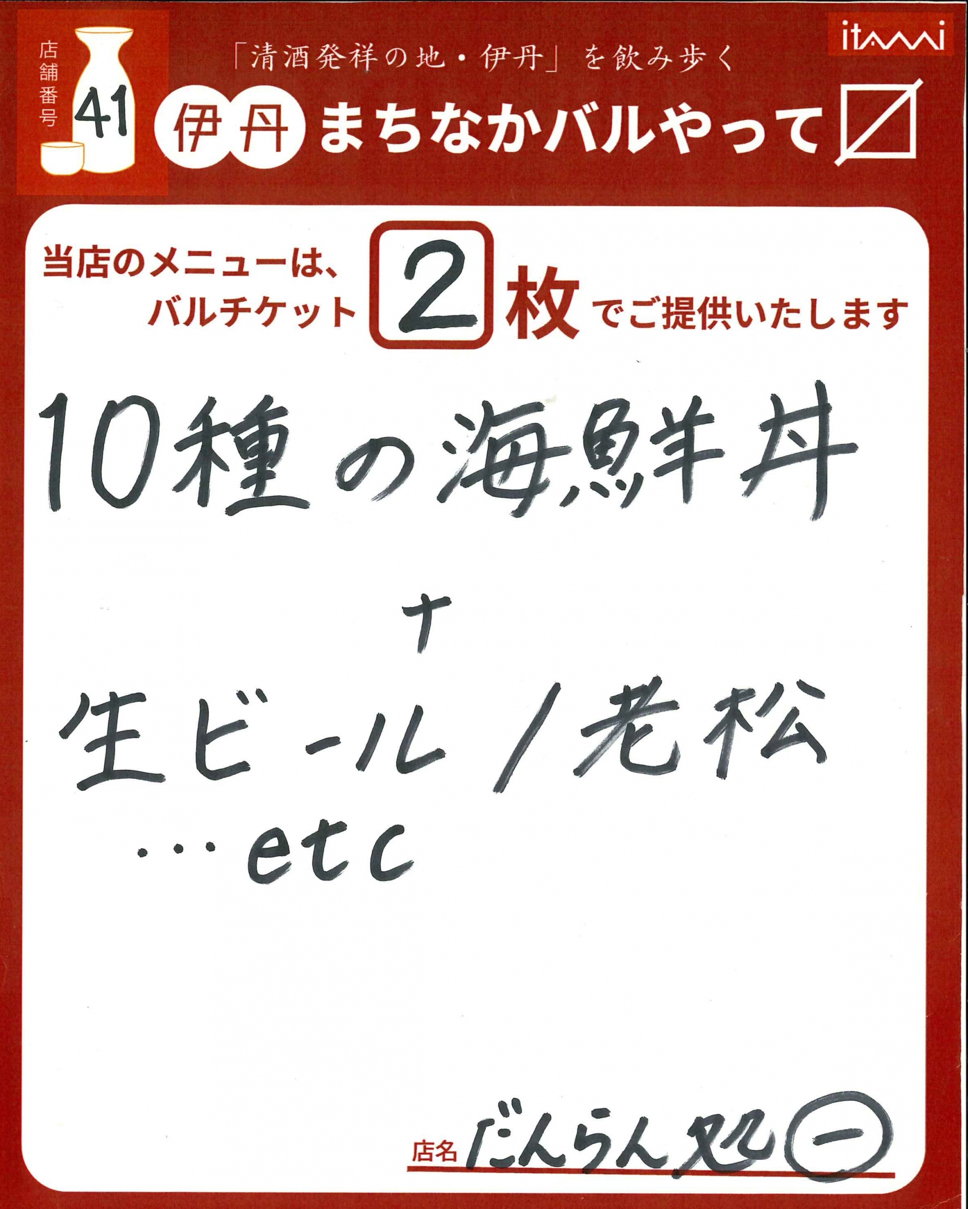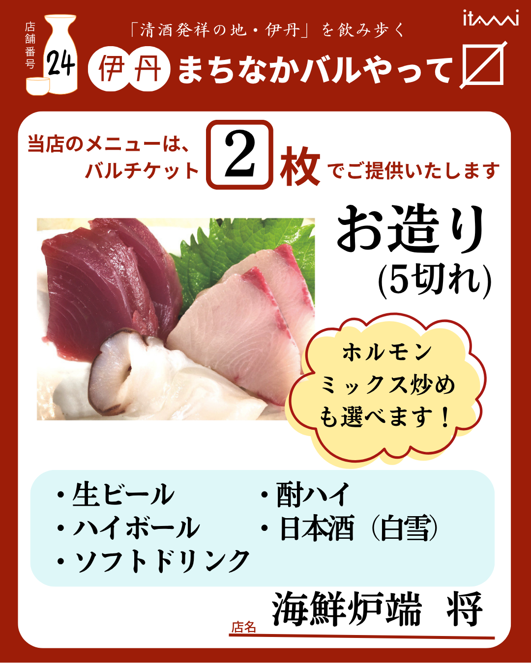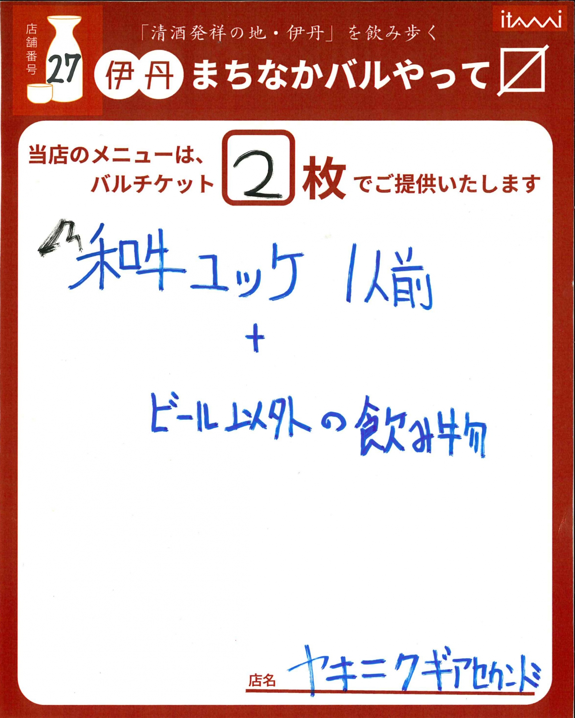 第33回 伊丹まちなかバル 本バルメニュー表紹介