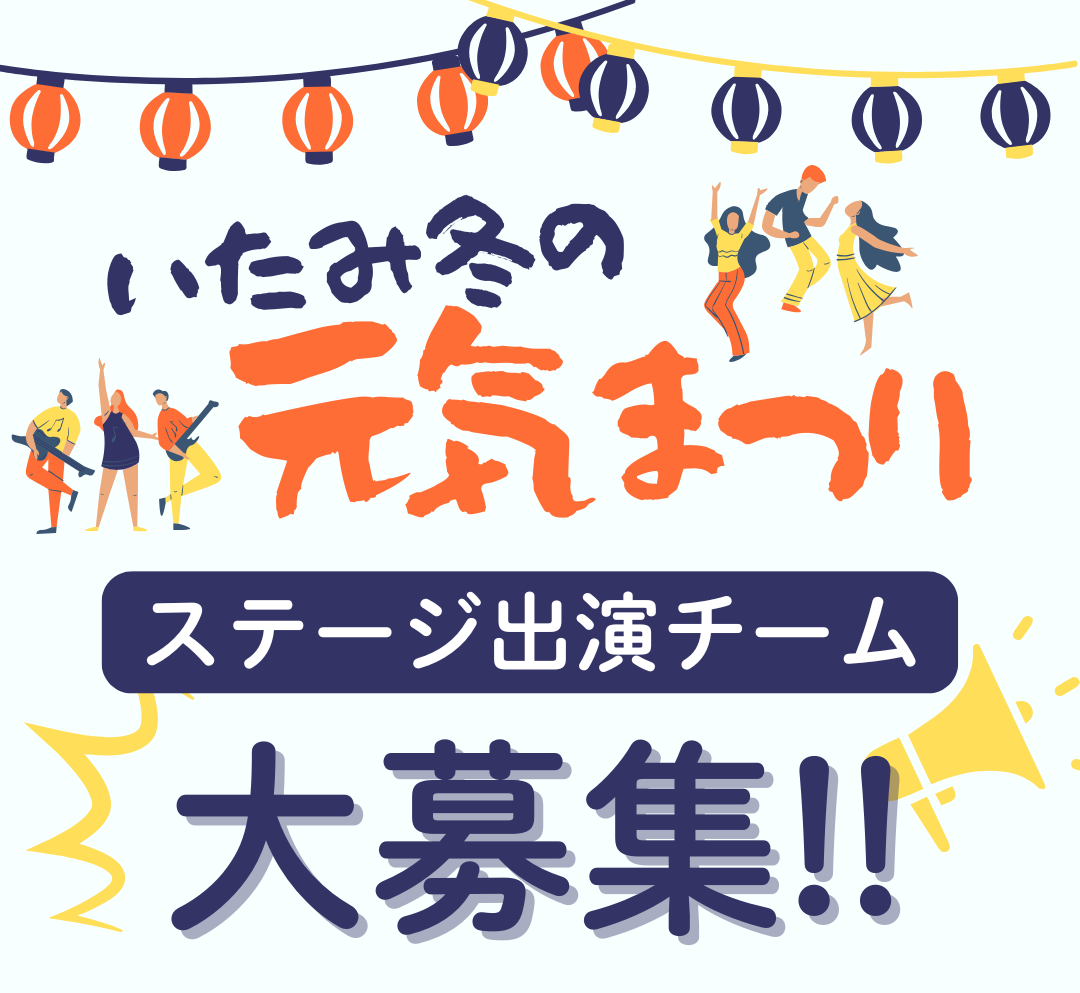 「いたみ冬の元気まつり」では、ステージでダンス・音楽のパフォーマンスを披露していただける個人・団体を募集いたします。